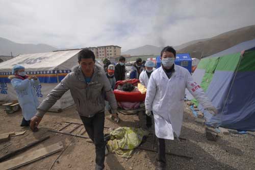 第一次遇到,在一個醫(yī)療帳篷前,他正和來自什邡的醫(yī)生一起抬著擔(dān)架向前飛奔,把重傷員轉(zhuǎn)移到救護車上;第二次遇到,在玉樹團州委設(shè)立的志愿者報名處的小桌子前,他正用沙啞的嗓音呼喊著幾名志愿者去山區(qū)抬傷員。