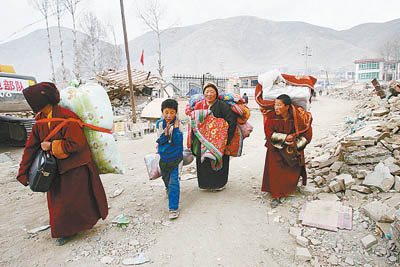 青海師范大學(xué)3年級(jí)學(xué)生伊西措毛是在15日凌晨?jī)牲c(diǎn)趕回玉樹的,但夜色并不能完全向她掩蓋地震造成的創(chuàng)傷。她路過(guò)結(jié)古鎮(zhèn)口塌掉的瑪尼堆,這是全世界最大的一個(gè),曾讓玉樹人引以為傲;她路過(guò)勝利路和民主路交界的三叉路口,原先最繁華的商業(yè)中心已經(jīng)被夷為平地;最后,她來(lái)到自己的家門口,這里保存著她從4歲開(kāi)始的所有夢(mèng)想。