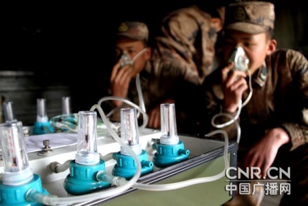 正在吸氧的某部戰(zhàn)士李從義告訴記者:“我是第一次上高原,反應(yīng)厲害,有了充足的氧氣,我們可以完成好這次抗震救災(zāi)任務(wù)。”(記者朱江 彭洪霞 郝成濤)