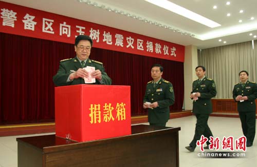 在“向玉樹(shù)地震災(zāi)區(qū)捐款儀式”上,警備區(qū)全體官兵脫下軍帽,低頭為玉樹(shù)遇難同胞默哀1分鐘。隨后,鄭州市委常委、警備區(qū)政委高方斌、警備區(qū)司令員李恕海和部門以上領(lǐng)導(dǎo)帶頭捐款,廣大官兵和職工紛紛慷慨解囊。捐款現(xiàn)場(chǎng)氣氛高漲,在外學(xué)習(xí)、探親、休假、出差的23名官兵以不同形式委托戰(zhàn)友替自己代捐,今年被確定轉(zhuǎn)業(yè)的10多名干部也趕到了現(xiàn)場(chǎng)參加捐款儀式。大家只有一個(gè)信念:齊心合力、眾志成城,幫助災(zāi)區(qū)群眾渡過(guò)難關(guān)。官兵們紛紛表示,雖不能到玉樹(shù)一線抗震救災(zāi),現(xiàn)在以捐助之情緩解一下災(zāi)區(qū)人民的燃眉之急,為災(zāi)區(qū)人民送上一絲溫暖,幫助災(zāi)區(qū)同胞渡過(guò)難關(guān)、戰(zhàn)勝災(zāi)害。 完