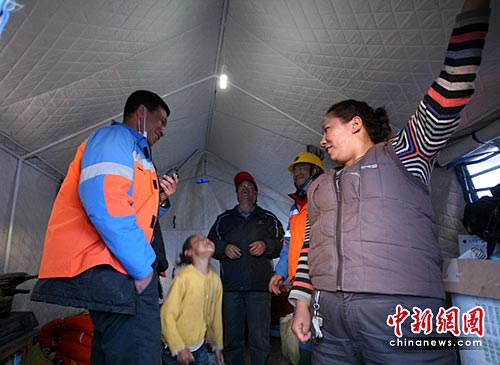 當(dāng)所有工作結(jié)束的時(shí)候,成都電業(yè)局安全監(jiān)察保衛(wèi)部主任鐘守熙又來到老師們中間,向大家詳細(xì)講解了帳篷和板房安全用電知識(shí)。傅文才校長激動(dòng)地說:“看來25日復(fù)課可以完全保證了!學(xué)校也是玉樹震后第一所恢復(fù)供電的學(xué)校!(完)