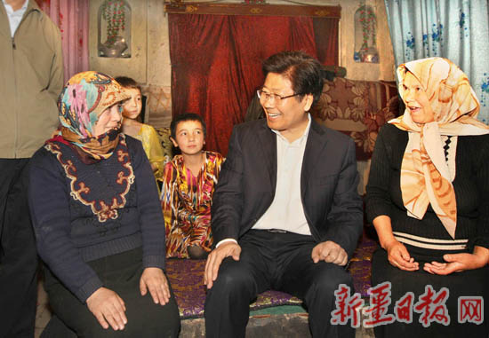 “你好啊,我從烏魯木齊來(lái)看望大家!”5月9日下午,新疆維吾爾自治區(qū)黨委上午在烏魯木齊舉行的北疆片區(qū)座談會(huì)剛一結(jié)束,自治區(qū)黨委書(shū)記張春賢立即趕往喀什,看望各族群眾,就有關(guān)民生工程建設(shè)進(jìn)行調(diào)研。一下飛機(jī),來(lái)不及休息,張春賢就驅(qū)車前往喀什市多來(lái)提巴格鄉(xiāng)14村。走進(jìn)村民玉蘇甫·艾買(mǎi)提的院落,張春賢便上前握住他的手說(shuō)。