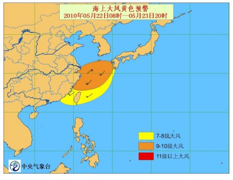 中新網(wǎng)5月22日電 中央氣象臺(tái)5月22日6時(shí)發(fā)布海上大風(fēng)黃色預(yù)警:受入海氣旋影響,22日08到23日20時(shí),東海大部海域?qū)⒂?級(jí)大風(fēng),陣風(fēng)可達(dá)10~11級(jí)。