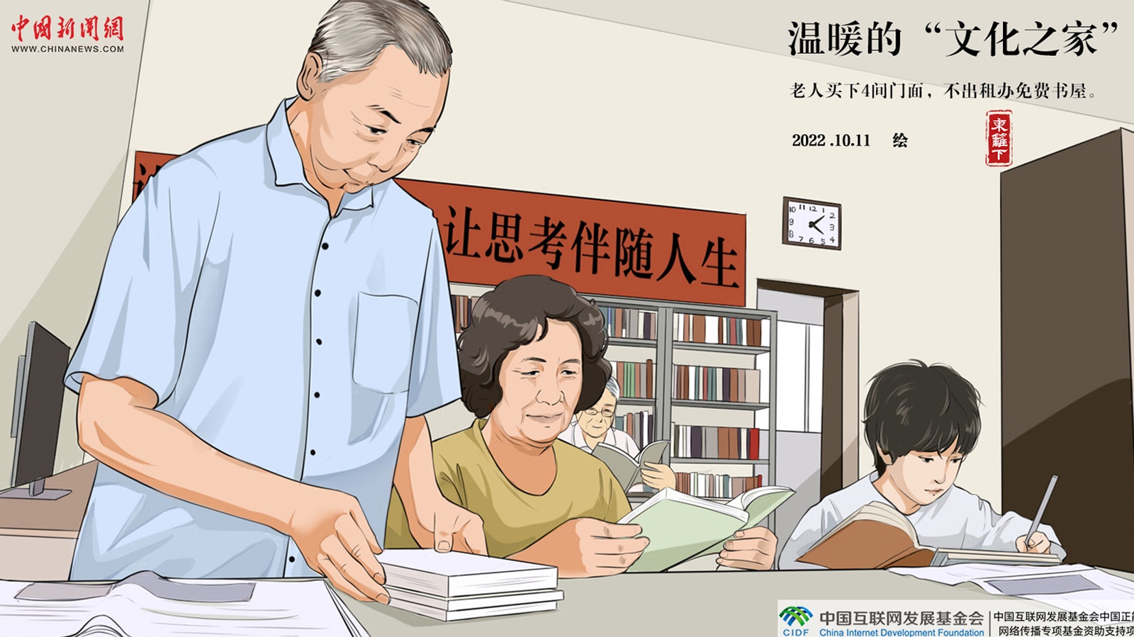 江蘇鹽城,77歲的付爺爺患有牙齦癌,6年前他自費買下四間門面辦起了“文化之家”,開設免費農家書屋、體育活動室供村民使用。
