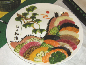 以色命名:金玉羹、玉露團(tuán)、琥珀肉。以時(shí)令命名:冬凌粥、秋葉餅。以烹調(diào)技法命名:滑熘里脊、粉蒸肉、干炸帶魚。以地名命名:北京烤鴨、南京板鴨、涪陵榨菜。以人物命名:東坡肉、文思豆腐、宮爆雞丁。以典故命名:柳浪聞鶯、掌上明珠、陽關(guān)三疊。以比喻、寄意、抒懷命名:通神餅、龍鳳腿、龍眼包子、麒麟魚、鴛鴦魚片、螞蟻上樹。以數(shù)字命名:一窩絲、二色膾、三不粘、四美羹、五福餅、六一菜、七返糕、八寶飯、九絲湯、十遠(yuǎn)羹、酒醉十三蠔、二十四氣餛飩、五彩牛百葉、八寶三味梨、百鳥歸鳳、千層糕、萬年紫鮑。