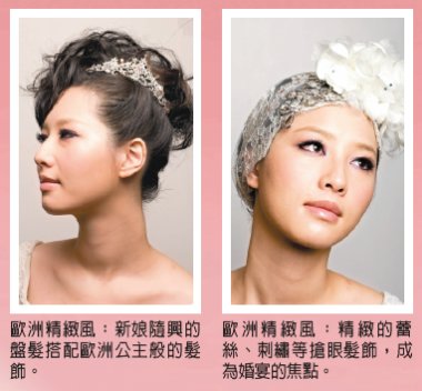 今年時尚界有許多飾品設(shè)計師出頭,在秀場上常見搭配夸張飾品的造型。怕麻煩的新娘,在發(fā)型上可以盡量簡單,只要更換不同的華麗發(fā)飾,就可以變出多樣風(fēng)格,尤其適合拍婚紗照或宴客中場短時間換裝時使用。