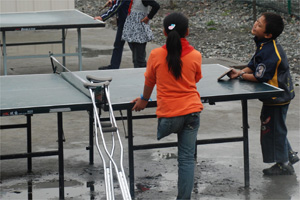 在學(xué)校操場邊的乒乓球桌旁,我見到了左腿截肢的6年級學(xué)生李雯茜。雯茜只有11歲,扎一個(gè)長長的馬尾辮,脖子上系著紅領(lǐng)巾,穿桔紅色上衣,笑起來滿臉都是陽光。