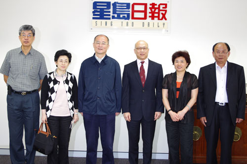 甫下機(jī),趙陽(yáng)就在中領(lǐng)館張龍忠領(lǐng)事陪同下率領(lǐng)藝術(shù)團(tuán)的高層、國(guó)外司司長(zhǎng)吳洪芹,國(guó)外司綜合處處長(zhǎng)盧海田,文教宣傳司副司長(zhǎng)郭錦玲造訪該報(bào)。該報(bào)行政總裁高文輝、總編輯黃繼昌熱情款待了趙陽(yáng)副主任一行。