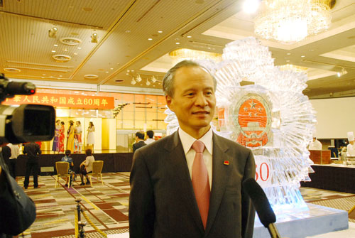 中新網(wǎng)9月30日電 據(jù)日本新華僑報網(wǎng)報道,29日,中國駐日本大使崔天凱在東京舉行盛大招待會,熱烈慶祝中華人民共和國成立60周年。日本內(nèi)閣官房長官平野博文、財務(wù)大臣藤井裕久等11名內(nèi)閣大臣,眾議院議長橫路孝弘、參議院議長江田五月、前首相羽田孜、森喜朗、福田康夫,日本經(jīng)濟、科技、教育、文化、新聞等各界及對華民間友好團體負責(zé)人,在日華僑華人、留學(xué)生、中資機構(gòu)代表共約2000余人應(yīng)邀出席了招待會。
