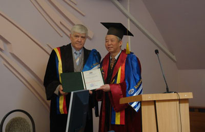中新網(wǎng)7月5日電 據(jù)中國(guó)外交部網(wǎng)站消息,近日,為了表彰中國(guó)駐摩爾多瓦大使施隆壯在加強(qiáng)中摩文化教育領(lǐng)域的合作和為在當(dāng)?shù)亟⒖鬃訉W(xué)院所做出的突出貢獻(xiàn),摩爾多瓦自由國(guó)際大學(xué)授予施隆壯榮譽(yù)博士學(xué)位。摩自由國(guó)際大學(xué)舉行了隆重的授予學(xué)位儀式,該校校長(zhǎng)加爾班親自主持,全體教師出席。
