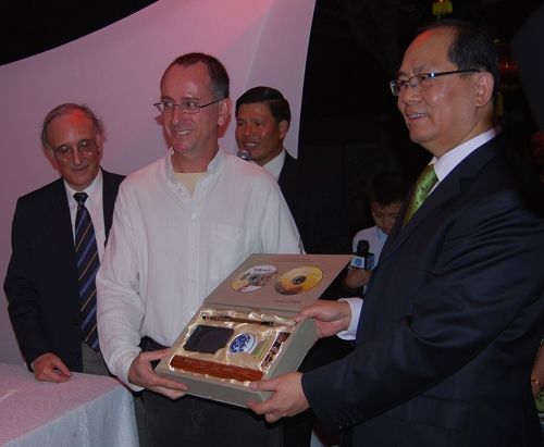 在慶祝晚會(huì)上,邱大使和熱拉爾多校長(zhǎng)共同為《把目光投向中國(guó)》的攝影圖片展剪彩。
