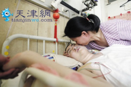 天津市河西區(qū)小海地第四醫(yī)院四樓的監(jiān)護(hù)病房內(nèi),收住的大都是上了年紀(jì)的老年人,可靠近走廊的一張病床上躺著的卻是一名少年。少年的身上戴著心電監(jiān)護(hù)器,鼻腔中插著胃管和輸氧管,一臺吸痰機就擺在病床邊的椅子上。跟周圍病床相比,這張床顯得比較特殊,不僅是因為床上的少年已經(jīng)躺了23個月,更因為病床的旁邊擺滿了各種生活用品,床間過道儼然成了一個小型廚房。