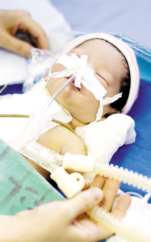 胸科醫(yī)院副院長劉建實(shí)教授表示,這例手術(shù)最大的難度就在于孩子太小,出生僅僅28小時,心臟僅僅有核桃大小,冠狀動脈也僅僅有1.5毫米粗細(xì)。因此為確保手術(shù)成功,胸科醫(yī)院做了充分的準(zhǔn)備,包括高倍放大鏡、比頭發(fā)絲還要細(xì)的縫線、最小號的呼吸機(jī)等。由于秋秋的心臟太小,手術(shù)幾乎全靠器械完成。經(jīng)過9小時的手術(shù),9月10日晚上11點(diǎn)手術(shù)順利完成,秋秋終于“修心”成功,進(jìn)入重癥監(jiān)護(hù)室進(jìn)行術(shù)后觀察。經(jīng)過一天的觀察,昨天秋秋的情況已經(jīng)基本穩(wěn)定,手術(shù)十分成功。