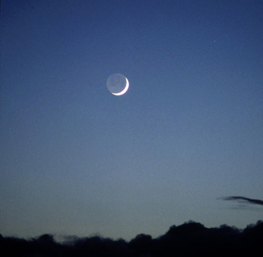 月球位于日、地之間時稱之為“朔”,月球暗的半個球朝向地球,我們看不到它;朔之后的一、二天,鐮刀狀的新月從西方的天空中出現(xiàn),當月球呈鐮刀狀出現(xiàn)在天邊的時候,我們能看到月球圓面的其余部分顯現(xiàn)微弱的光輝。這種光輝來自地球反射的太陽光,稱為“灰光”。地球能把入射陽光的40%反射出去,比月球反射光線的“能力”高得多,從而可以照亮月球,產(chǎn)生“灰光”。