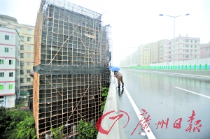 記者在附近采訪發(fā)現(xiàn),類似的高層自建房在當?shù)胤浅F毡。如大圖這般緊貼華南路三期的就有3棟。城管有關負責人表示,執(zhí)法部門目前對此類情況“以控為主”,對違規(guī)加建的部分,將予以處罰并在下次征地拆遷時不予補償。他提醒市民千萬不要購買這種自建房,否則后果自負。