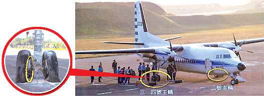 馬英九坐前座未查覺,后座的鄭德美透過窗口發(fā)現(xiàn)異狀,立即向馬英九報告“飛機出狀況,請即刻下機”。地勤人員發(fā)現(xiàn)機輪著火,透過無線電告知機長,消防車也趕到撲滅火勢。