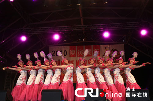 藏族演員阿旺演唱的歌曲《天路》,悠揚(yáng)的旋律仿佛把人帶進(jìn)了雪域高原。中央民族歌舞團(tuán)副團(tuán)長(zhǎng)丁偉導(dǎo)演介紹說(shuō),參加這次演出的主要是中央民族歌舞團(tuán)的維吾爾、藏、苗、侗等各個(gè)民族的演員,節(jié)目也是豐富多彩。他說(shuō):“通過(guò)這個(gè)活動(dòng),一個(gè)我們可以介紹中國(guó)是個(gè)多民族,而且是個(gè)非常和諧非常團(tuán)結(jié)的一個(gè)國(guó)家。另外一點(diǎn),中國(guó)的少數(shù)民族的藝術(shù)也非常的絢麗多彩,通過(guò)我們的演出,除了向本地的華僑華人拜年,也可以向國(guó)外的觀眾介紹這樣絢麗的歌舞!