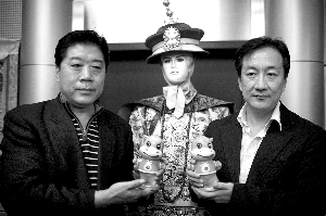兩位草根皇帝李少華(左)和張濤(右)在展示地壇廟會的吉祥物。昨日,地壇廟會組委會宣布,老北京叫賣將首次進(jìn)駐地壇春節(jié)廟會,并將為游客首次上演老北京叫賣情景劇。而地壇海選的新“皇帝”將于大年初一、初五扮演皇帝祭地。今年,地壇廟會在對小吃攤位進(jìn)行拍賣的同時,還拿出五個位置絕佳的“黃金攤位”,請來了正宗“中華老字號”小吃的代表:東來順飯莊、白魁老號、護(hù)國寺小吃店、餛飩侯和茶湯李。(浦峰 李立強(qiáng) 攝影報道)