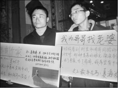 據(jù)介紹,夏海波兄弟將在中山公園、江漢路等繁華街頭舉牌征婚,以此擴大影響。