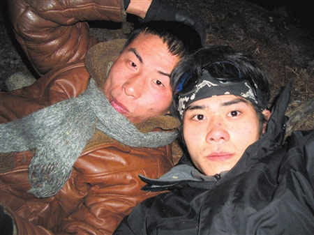 王興波:我們第一天走到長坪溝的木騾子,手機(jī)就沒有信號了。為了節(jié)約電,我們都關(guān)了機(jī)。之后一路上都沒有信號。第八天(2月5日),由于無路可走,我們爬到半山腰,前面是懸崖,我們又只好往山下降,忽然一塊石頭從山上滾下來,我頭一歪,躲了過去。當(dāng)我還沒有緩過氣來,忽然,一個黑影又掉下來,只聽撲通一聲,劉亞超從山上滾到了河里。他喊了一聲:“大波,救我”,瞬間就被激流沖走。幸好他抱住了一塊石頭。我好不容易用繩子把他拉了回來。那次,我們的手機(jī)全都進(jìn)了水。2月8日,我們在被兩姐妹救的地方仍然沒有信號。送我們到映秀時,才有了信號,我們才用那位大哥的手機(jī)給青青(劉亞超的女朋友)打了第一個電話。