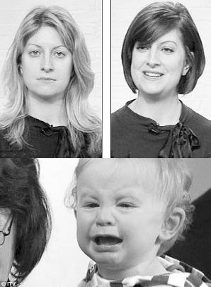 可令林德茜做夢也沒想到的是,美容師的手段實在太“高明”,她的變化實在太大,結果連她10個月大的兒子查利都沒能認出她來。當她從后臺走到前臺,并試圖從電視臺員工手里抱過自己的兒子時,小查利面對這個“陌生人”立即大哭起來,并掉轉腦袋哭喊著四處尋找媽媽。這突如其來的一幕讓“今晨”秀節(jié)目主持人弗恩·布賴頓和菲利浦·肖菲爾德感到相當尷尬,他們立即建議林德茜帶著兒子前往后臺,讓他們母子倆重新“認識”和熟悉一下。
