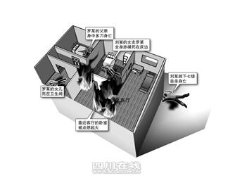 跳樓時,劉某身上穿了一件棉毛衫和一條春秋褲,明顯是經(jīng)過了一夜的思考才做的決定!八丶业臅r候還吃了燒烤的?蛷d左邊的那間臥室還被火燒了,孩子死在衛(wèi)生間里面,穿的粉紅皮鞋,身體在便池里面!睋(jù)這位知情人士透露,現(xiàn)場還有兩間臥室沒有被火燒,分別放著羅某和其父親的尸首。羅某全身赤裸,趴在床頭邊,紅色內(nèi)褲被脫至大腿兩側(cè),而羅某的父親在另外一間臥室平躺,頭朝門外,身上多處刀傷,滿地鮮血……至于劉某自殺前為何要將另外一間臥室點燃不得而知,遺書中沒有交代。(記者高洋攝影華小峰)