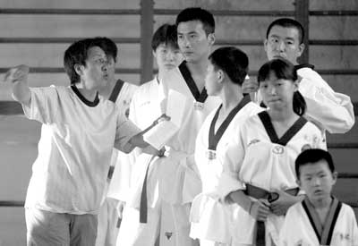 一大早,記者就趕到什剎海體校。道館外,一幫跆拳道館的學(xué)員們早已換好了行頭,等著他們的“同學(xué)”柳云龍的到來。盡管演員們還沒有來到現(xiàn)場,可是跆拳道館內(nèi)攝影、燈光、錄音等幕后工作人員卻已經(jīng)把一切準備工作完成。可能是幾天來的勞頓,大家都休息不好,場邊的椅子上一個小伙子睡著了。劇組周小姐說:“我們今晚還要忙到夜里一點!彪m然這幾天非典疫情已經(jīng)得到控制,但是劇組為了防患于未然,還是立下了一個規(guī)矩:拍攝時,現(xiàn)場不得超過50人,而此前所有的人在進學(xué)校大門時已經(jīng)測過了體溫。