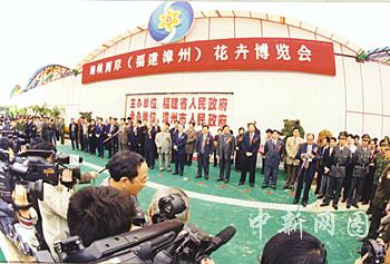 全國(guó)政協(xié)副主席張克輝等國(guó)家和福建省領(lǐng)導(dǎo)參加1999年首屆海峽兩岸花博會(huì)。林忠攝