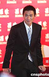 主辦方特意制作的深藍(lán)色瘦身西裝把華仔本來(lái)就很精瘦的身材襯托得更瘦削和精神,他對(duì)這套特制的西服感到十分滿意,不但在照相時(shí)特意整理衣角、撫平褶皺,甚至不惜貶低自己的身材來(lái)夸獎(jiǎng)裁縫師傅的手藝!拔疫@個(gè)人身材很奇怪,個(gè)子又不高,所以穿衣服特別挑剔,除了白襯衫,很不喜歡穿有顏色的衣服,也很少打領(lǐng)帶,不過(guò)這次的衣服實(shí)在沒(méi)得挑剔,比我在香港合作10多年的裁縫師傅都做得好,所以我特意配了領(lǐng)帶。”說(shuō)著指了指領(lǐng)帶,在場(chǎng)一百多人頓時(shí)被逗得大笑起來(lái)。