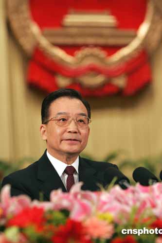 大會主席團(tuán)常務(wù)主席、大會執(zhí)行主席吳邦國宣布大會開幕。隨后,溫家寶總理走上講壇,代表國務(wù)院向大會作政府工作報(bào)告。