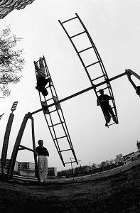 體能訓練近乎殘酷。在最初的一個半月的封閉訓練中,她們沒有一天的休整機會,練隊列、拉單杠、撐雙杠、轉旋梯、繞滾輪、跑3000米……每天都是超負荷訓練。按過去的慣例,這段日子,她們每人平均磨壞3雙運動鞋。隨后是跳傘訓練,這種訓練既學習飛行員自救的方式,也錘煉心理承受能力和頑強的戰(zhàn)斗精神。每天,女學員都要在兩米高的跳臺上爬上、爬下數百次。