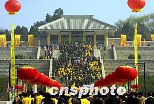 據(jù)《史記》記載:“黃帝崩,葬橋山”。黃帝陵所在的橋山,總面積為8500余畝,下有沮水環(huán)繞,南與印臺(tái)山相望,山上有古柏8萬余株,千年以上古柏3余萬株,是我國最大的古柏群。黃帝陵園面積10余畝,陵前設(shè)有祭亭,內(nèi)立郭沫若親書“黃帝陵”碑。陵冢高3.6米,陵園周長(zhǎng)48米。園內(nèi)古柏參天,一派莊嚴(yán)肅穆的氣氛。每年清明節(jié)、重陽節(jié),海內(nèi)外炎黃子孫聚集橋山,舉行隆重的祭祀大典。陵園入口處有“漢武仙臺(tái)”,高數(shù)10米,拾級(jí)而上,縣城、東灣盡收眼底。