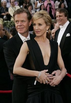 最佳女主角大熱女星菲麗西提·霍夫曼與丈夫大秀恩愛。(路透社圖)