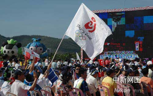今天的三亞的天空格外晴朗,起跑儀式在鳳凰島“火鳳凰”廣場舉行,取“鳳鳴和諧”之寓意,在圣火傳遞起跑儀式現(xiàn)場,還鑲嵌了本站傳遞208位火炬手的手模。在一個(gè)簡短的儀式之后,北京奧組委副主席劉敬民點(diǎn)燃“祥云”火炬,海南省委書記衛(wèi)留成將火炬交給了第一棒火炬手、奧運(yùn)冠軍楊揚(yáng)。