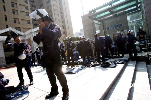圖:警方在臺北賓館嚴(yán)陣以待護衛(wèi)"馬陳會"