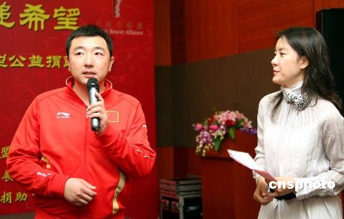 圖:奧運(yùn)冠軍楊凌向宏志班學(xué)生提供愛心捐贈