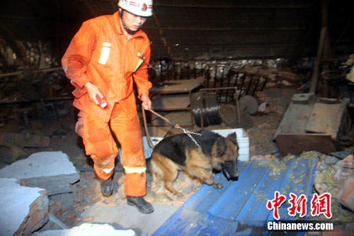 剛剛參加南平抗洪救災(zāi)歸隊的搜救犬“叮當(dāng)”又投入了新的戰(zhàn)斗,瓦礫上、縫隙中、樓板下“叮當(dāng)”和其它5只“戰(zhàn)友”不停地穿梭搜索,與生命探測儀配合,準(zhǔn)確定位了6處搜救點(diǎn)。