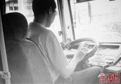 本報熱線接周女士反映:(廈門)仙岳路上,一個公交司機開車時一邊玩手機一邊抽煙!