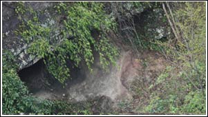 拍攝的實(shí)際地點(diǎn),位于饅頭山和主峰之間。發(fā)現(xiàn)疑似華南虎的新坊村有村民806人,耕地728畝,多為稻田。丹霞地貌的石頭山和林地面積1萬多畝,人口密度較大,從公路到拍攝地點(diǎn)的2公里中,沿途要經(jīng)過4處村民的住宅,沿途還能看見無人看守的家畜在田間吃草。在臨近拍攝點(diǎn)處,還有農(nóng)田和一座村民的牛棚。在拍攝點(diǎn)以上,有一座香火旺盛的廟宇,許多人每天從此路上山。