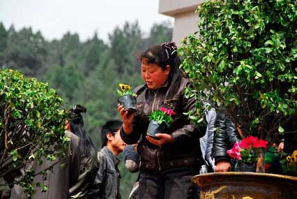 趙亞輝在博客上說(shuō),自己正在參加由人民日?qǐng)?bào)組織的跨時(shí)代回訪———“重走中國(guó)西北角”,4月4日正好趕上了一年一度在黃帝陵舉行的清明節(jié)公祭黃帝大典。自己祭拜完黃帝陵后,下山時(shí)再次途徑舉行大典的軒轅殿,卻被眼前的景象驚呆了:“廣場(chǎng)上不少人手里抱著一盆盆、一束束花,還有很多人正在搶著把擺放在大殿上下臺(tái)子上的小花盆拿走。
