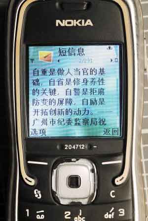 記者了解到,在“清廉羊城”這項(xiàng)活動中,市紀(jì)委建立了一個領(lǐng)導(dǎo)干部廉政信息發(fā)送平臺,在重大節(jié)假日之前、重要會議之后,廉政信息發(fā)送平臺都會及時向領(lǐng)導(dǎo)干部編發(fā)廉政短信。