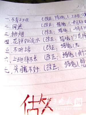 記者在浩浩家中看到了浩浩寫的一些自己的缺點:“不肯上班”“網(wǎng)迷”“抽煙”“花錢如流水”“不聽話”等等,這些字跡可能是浩浩生前最后的筆跡,也說明了他自己也意識到了自己的缺點。浩浩家的一位鄰居告訴記者,黃德林夫妻四年前離婚,浩浩平時和黃德林生活,但父子兩人在一起時間并不多。