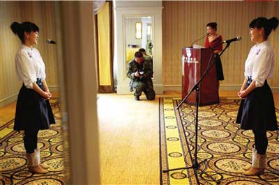下午2點(diǎn),比賽正式開始,兩名自稱從事教師職業(yè)的女孩展示了自己的才藝,并回答了一些與文化音樂有關(guān)的問題。但在隨后的比賽中,到場(chǎng)記者被請(qǐng)出場(chǎng)外,主辦者稱,“這是為選手的隱私考慮”。