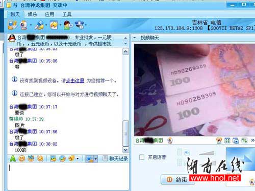 據(jù)記者與該男子聊天時,QQIP地址欄顯示對方IP在日本,接通視頻聊天后,IP地址又更換為“吉林省123.173.184.9:1308”。據(jù)該男子提供的手機號碼1363627****的歸屬地為湖北恩施,另一個手機號1313016****的歸屬地為遼寧鞍山。同時向記者提供了一個農行帳號和一個工行帳號。