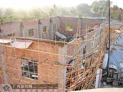 發(fā)生坍塌的樓房位于陸川縣良田收費站附近,是良田公路養(yǎng)護所的一棟在建機械倉庫。該樓房占地面積有250平方米左右,高7米,只有一層,公路養(yǎng)護所打算建成后,用來存放養(yǎng)護公路的車輛、工具等。發(fā)生事故前,該樓房已快竣工,正準備封頂收尾。