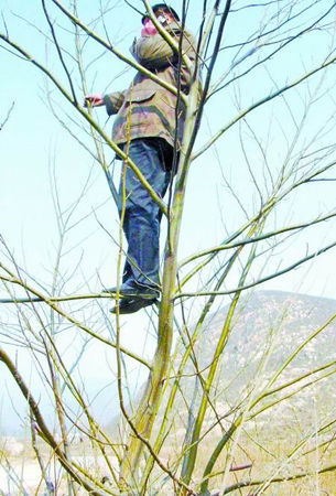 《大河報(bào)》報(bào)道,泌陽(yáng)縣東棚村群山環(huán)抱,2月1日上午,村外的樹(shù)上站著一個(gè)人,正在打手機(jī)。該男子從樹(shù)上下來(lái)后抱怨道:這幾天,手機(jī)信號(hào)在村里很弱,通話時(shí)常掉線。村里人沒(méi)法子,接打手機(jī)時(shí),不是跑到村外的山坡上,就是爬上樹(shù)。