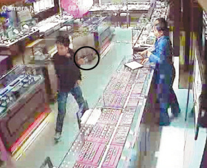 “這人我有印象,他以前來(lái)過(guò)店里!狈磸(fù)看了幾遍監(jiān)控錄像后,店長(zhǎng)鄭小姐突然說(shuō)。鄭小姐說(shuō),這名黑衣男子去年臘月底曾到過(guò)店內(nèi),當(dāng)時(shí)他穿的是一身運(yùn)動(dòng)裝,同來(lái)的還有另一名青年男子,兩人進(jìn)店后看了兩三個(gè)小時(shí),詢問(wèn)了上10種珠寶首飾的價(jià)格,但什么都沒(méi)買(mǎi),她和另一名店員還曾報(bào)怨過(guò),所以印象較深。