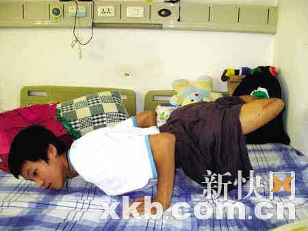 就是在這樣困難的姿勢(shì)下,安安還伸手幫助旁邊的女同學(xué)梁歡,讓她不再被壓住,梁歡后來(lái)平安得救。而安安自己卻屈著身子,最后腿被壓至壞死,次日下午獲救以后,等待他的只能是截肢。