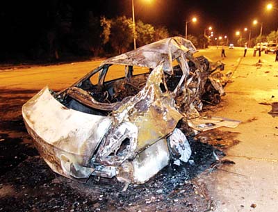 事故發(fā)生后,記者接報趕到現(xiàn)場發(fā)現(xiàn),被撞后嚴重扭曲變形的“天籟”小轎車,已燒剩一副骨架,車尾部仍在不停地冒煙,現(xiàn)場彌漫著一股刺鼻的焦臭味;而離該車尾部左邊約七八米外的雙黃線旁,橫臥著一具身穿紅色上衣的男子尸體;該車內(nèi)右側(cè)座位上也有一具已被燒焦的尸體。
