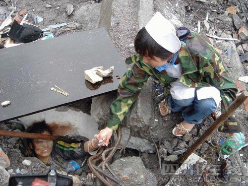 化妝師一眼就認(rèn)出了顧云仙,那張“最美女護(hù)士”照片已經(jīng)讓她變成了名人。去年5月14日上午,在北川中學(xué)救援的顧云仙被鏡頭定格下這樣的一幕:她腳穿涼鞋,蹲在廢墟邊上,左手提著一袋血漿,右手和一名少年的左手緊緊握著;而那名少年正被扭曲的鋼筋、預(yù)制板死死壓著,眼神里流露出對(duì)生的強(qiáng)烈渴望。網(wǎng)友們把這一幕稱為“汶川大地震中最感人的十大鏡頭”,顧云仙因此成了“最美女護(hù)士”,并獲得全國(guó)總工會(huì)頒發(fā)的“五一勞動(dòng)獎(jiǎng)?wù)隆薄?/p>